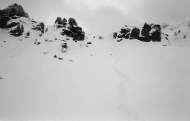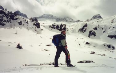 Randonnée effectuée sur neige et raquettes utilisées à partir de 1700 mètres. J'ai fait demi-tour à 2000 mètres, juste sous le refuge de Larribet (2060 m.) à cause d'une grosse coulée de neige qui m'est passée à cinq mètres. Ce moment de frayeur passé, dans la descente, j'ai croisé le gardien du refuge qui montait en skis de randonnée avec un sac chargé de provisions pour faire l'ouverture du refuge.